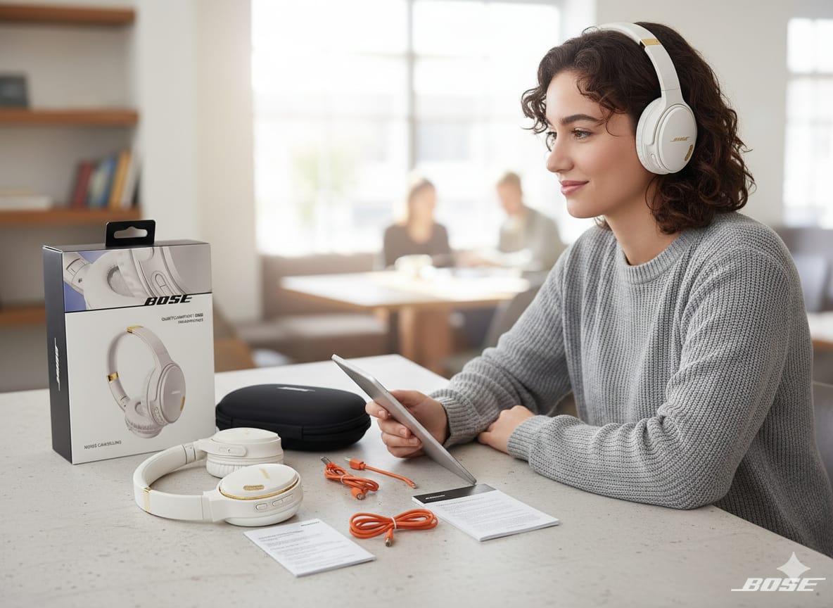 Casque Sans Fil Type Bose QuietComfort – Édition Blanc & Or