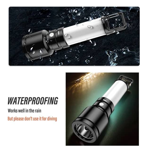 Lampe de poche LED rechargeable haute puissance, lampe de camping, lampe de poche avec lumière latérale, étanche, lampe d'extérieur portable avec crochet arrière