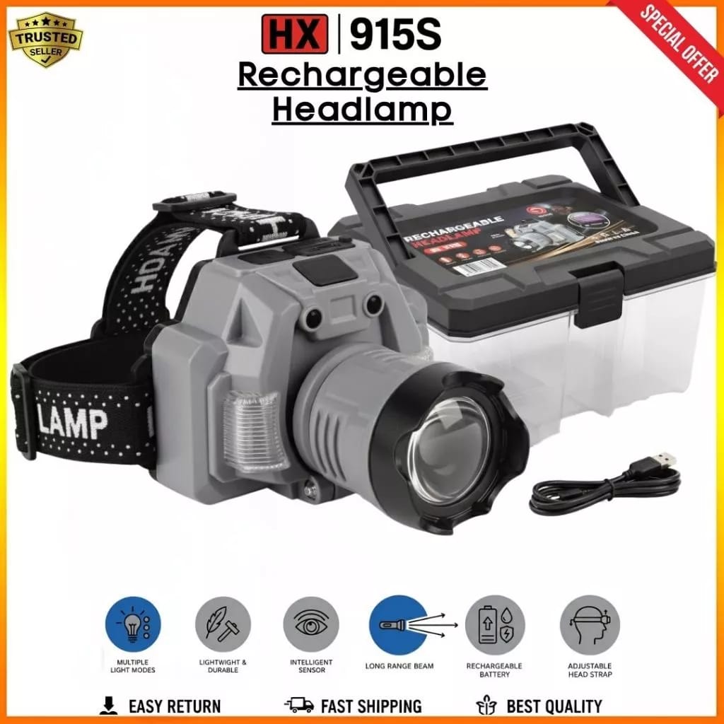 La lampe frontale rechargeable HX-915S est un outil d’éclairage polyvalent et mains libres, doté d’un capteur de mouvement, d’un zoom réglable et d’une conception étanche (IPX4), idéal pour le camping, la randonnée et la pêche. Elle offre généralement 4 modes d’éclairage (fort, moyen, faible, flash) et se recharge rapidement, offrant une solution performante pour les activités nocturnes.